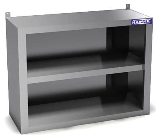 Полка настенная закрытая с трех сторон без дверей для временного хранения и размещения посуды, инвентаря в цехах и моечных отделениях предприятий питания изготовлена полностью из нержавеющей стали.