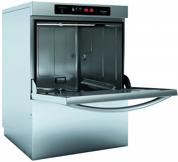 Посудомоечная машина Fagor CO-502 B DD с помпой с низким окошком и фронтальной загрузкой используется на предприятиях общественного питания для мойки посуды, кухонных принадлежностей, стаканов, чашек и приборов.