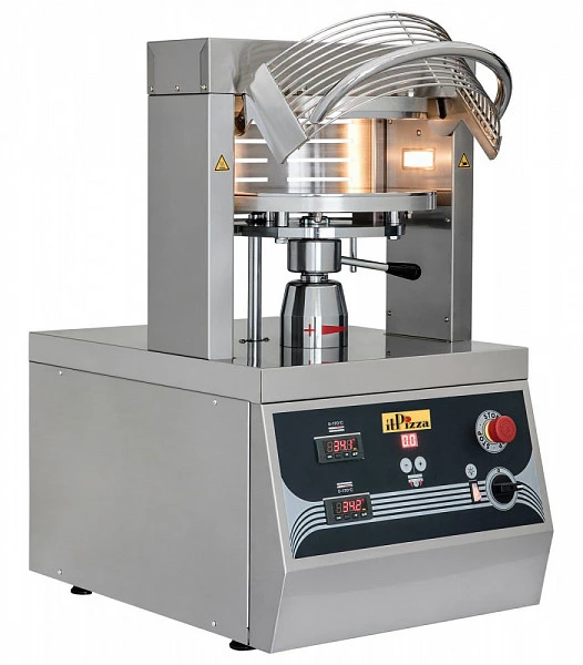 Корпус и пластины выполнены из нержавеющей стали, нижняя пластина имеет скос для формирования бортика пиццы. Имеется защитная решётка для обеспечения безопасности персонала.