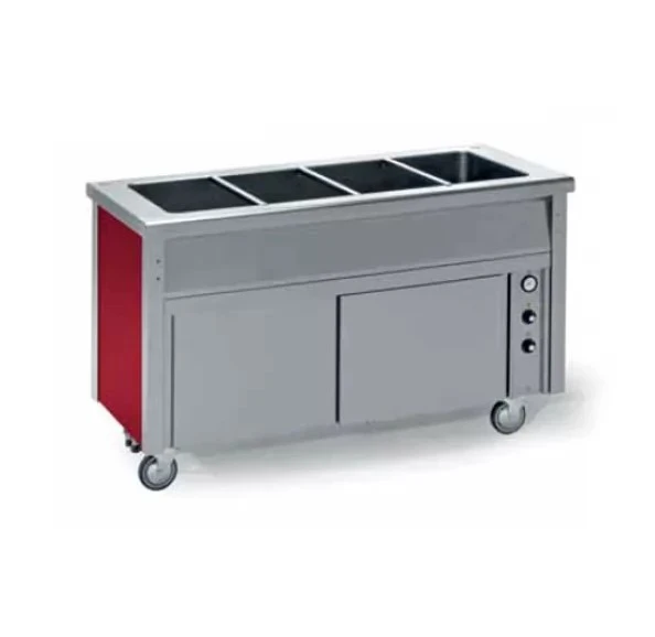 Мармит имеет цифровую регулировку температуры и поддерживает режим от +65 до +90°С, обладает мощностью 3,6 кВт. Скруглённые края ванны способствуют комфортной эксплуатации и легкой очистке. Под мармитом располагается сухой нейтральный шкаф.
