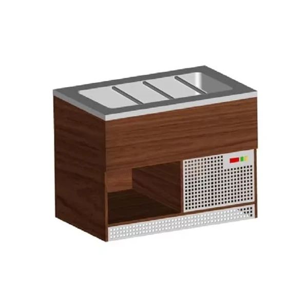 Паровой прилавок-мармит для 1 и 2 блюд серии Supreme предназначен для демонстрации, подогрева и кратковременного хранения при определенной температуре горячих и теплых первых/вторых блюд на предприятиях общественного питания и торговли. Является идеальным решением для презентации макарон, риса и тушеного мяса. Используется в линиях раздачи или при организации самообслуживания. Мармит полностью выполнен из высококачественной нержавеющей стали AISI 304 и оснащен делителями для 4-х гастроемкостей формата GN 1/1 максимальной глубиной до 200 мм. Мармит имеет цифровой программируемый контроль температуры и поддерживает режим от +65 до +90°С, обладает мощностью 3 кВт. Под мармитом располагается сухой нейтральный открытый шкаф. Гастроемкости в стандартную комплектацию не входят. Прилавок выполнен в ЛДСП, имеются колёсики.
