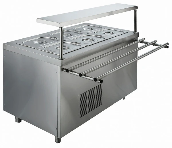 Линия ШКОЛЬНИК спроектирована специально для организаций бюджетной сферы, в частности – учебных заведений. Функционально линия отвечает всем современным требованиям организации общественного питания. Столешницы, полки и направляющие изготовлены из нержавеющей стали AISI 304. Передние и боковые панели из оцинкованной стали, окрашенной серой эпоксиполиэфирной краской. Линия включает все необходимые для рабочей расстановки элементы: прилавки-витрины охлаждаемые (закрытый и открытый), прилавки нейтральные, прилавок для столовых приборов и подносов, кассовая кабина и мармиты (первых, вторых блюд и универсальный). Элементы линии доступны в двух вариантах длины: 1120 и 1500 мм.