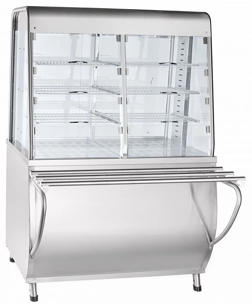 Прилавок-витрина тепловой Abat ПВТ-70Т используется для недолговременного хранения кондитерских и мелкоштучной хлебобулочной изделий в теплом состоянии, а также других продуктов питания на тарелках, подносах и других функциональных емкостях.