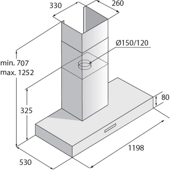 Высота вытяжки без короба: 8 см