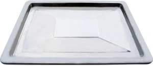 Внешние размеры: 353х325мм, внутренние - 335х325*20мм, толщина стали 0,7мм.