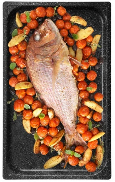 Специальный противень из алюминиевого антипригарного сплава с минеральными частицами с эффектом камня.