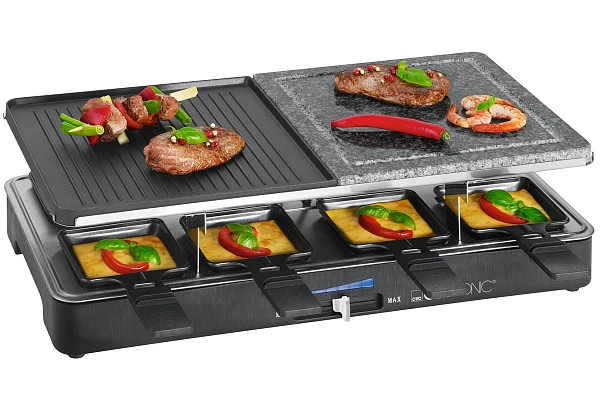 Раклетница Clatronic RG 3518 предназначен для жарки мяса, рыбы и овощей с одновременным плавлением сыра в частных домах, квартирах, отелях и офисах.