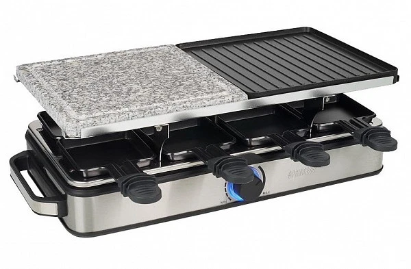 Раклетница Princess 162635 предназначен для жарки мяса, рыбы и овощей с одновременным плавлением сыра в частных домах, квартирах, отелях и офисах. Модель оснащена термостатом с синей подсветкой и съемными пластинами для гриля. Корпус выполнен из нержавеющей стали.