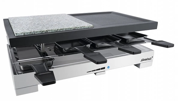Раклетница Steba RC 88 предназначен для жарки мяса, рыбы и овощей с одновременным плавлением сыра в частных домах, квартирах, отелях и офисах. Модель оснащена панелью управления с поворотными регуляторами, светодиодным индикатором работы и съемными пластинами для гриля.