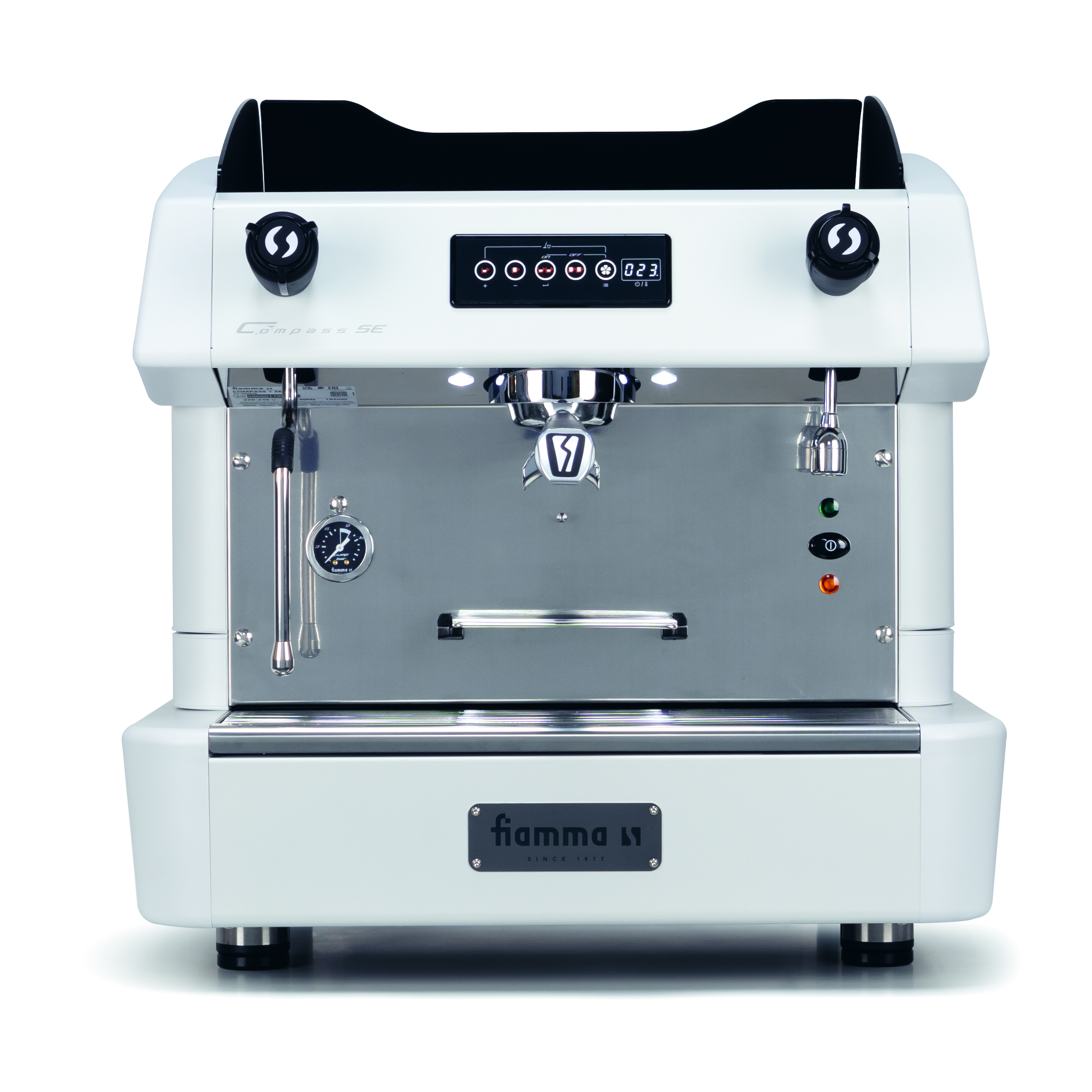 Рожковая кофемашина Fiamma COMPASS 1 SE TC white используется на предприятиях общественного питания и торговли для приготовления эспрессо и кофейных напитков на его основе.