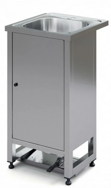 Рукомойник с педальным приводом Марихолодмаш изготовливается из нержавеющей стали, имеющей доступ к контакту с продуктами.