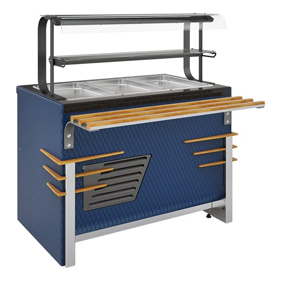 Прилавок используется в качестве вспомогательного модуля в составе линии прилавков самообслуживания (линии раздачи), а также как самостоятельный прилавок.