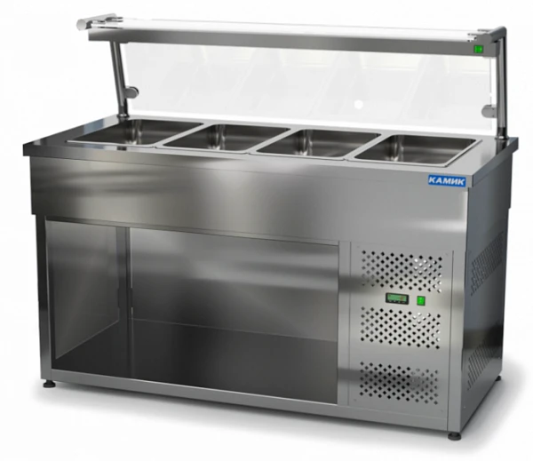 Салат-бар охлаждаемый Камик СОН-115001 предназначен для кратковременного хранения ингредиентов для приготовления салатов на предприятиях пищевой промышленности, общественного питания и торговли.