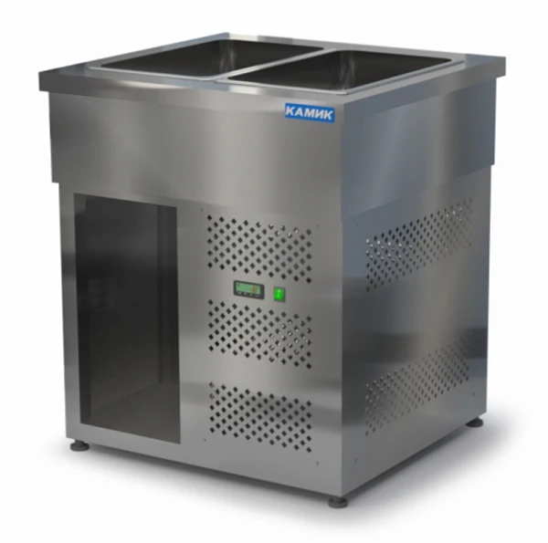 Салат-бар охлаждаемый Камик СОН-17500 предназначен для кратковременного хранения ингредиентов для приготовления салатов на предприятиях пищевой промышленности, общественного питания и торговли.