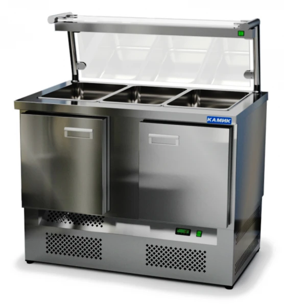 Салат-бар охлаждаемый Камик СОН-211041 предназначен для кратковременного хранения ингредиентов для приготовления салатов на предприятиях пищевой промышленности, общественного питания и торговли.