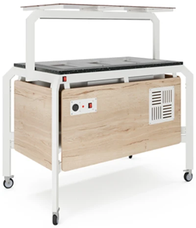 Салат-бар тепловой Кобор AT120 white/natural/coal предназначен для кратковременного хранения вторых блюд, гарниров, соусов в горячем состоянии в гастроемкостях и раздачи их потребителю при организации буфетов, шведских столов на предприятиях общественного питания (ресторанах, кафе и т.д.)