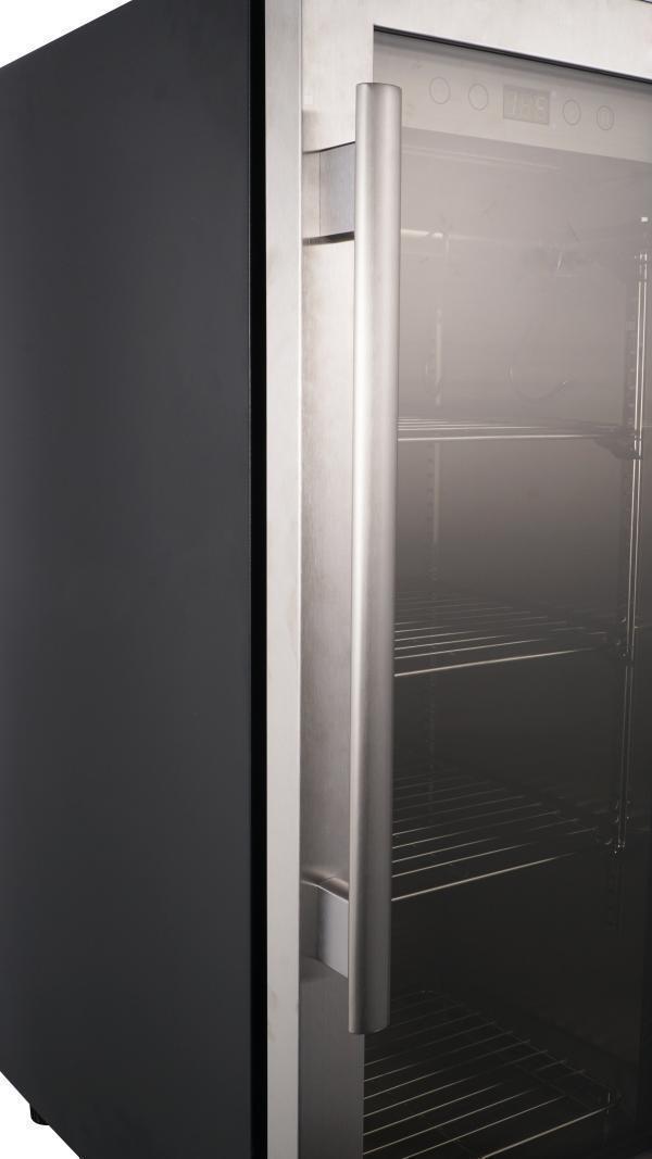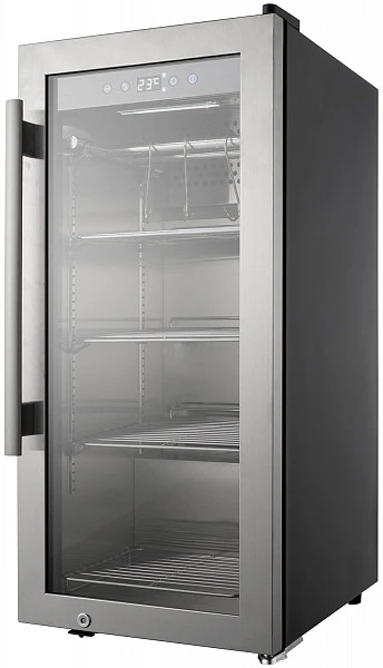 Отличительной чертой шкафов для вызревания мяса MeatAge серии LUX является внутренняя камера, выполненная полностью из нержавеющей стали, а так же трехслойное анти-УФ стекло, позволяющее лучше сохранять температуру в камере и наблюдать за процессом созревания мяса без нарушения микроклимата в шкафу. Воздух внутри стерилизуется УФ лампой и пропускается через угольный фильтр. Мясо в камере можно подвешивать на крюки или хранить на полках.