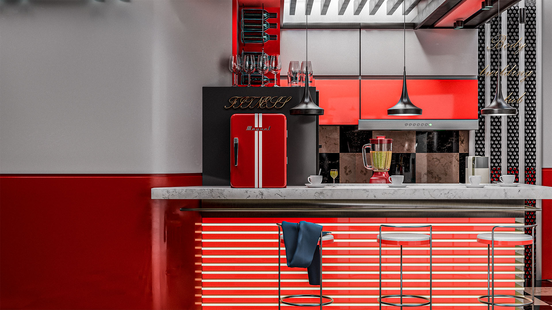 Стильный ретро-дизайн в красном цвете.