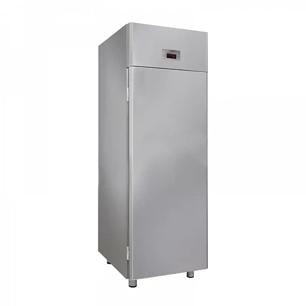 Шкаф обеспечивает поддержание температуры в пределах от -2 до +8°С, что оптимально подходит для хранения мяса, рыбы и полуфабрикатов. Имеет динамический тип охлаждения и автоматическую систему оттайки с испарением конденсата. Холодильный агрегат находится в отдельном отсеке. Внутри шкафа расположен воздухоохладитель с вентиляторами, которые обеспечивают равномерное распределение холодного воздуха внутри полезного объема шкафа. У холодильника одна дверца, которую можно перенавешивать, меняя направление ее открывания. Герметичный корпус и все конструктивные элементы шкафа изготовлены из нержавеющей стали.