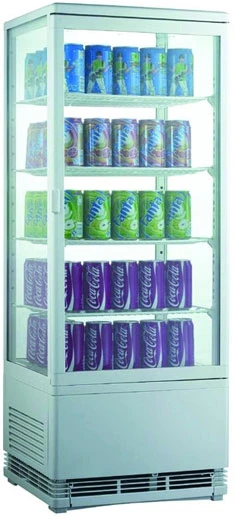 Шкаф-витрина холодильный Gastrorag RT-98W объемом 98 л предназначен для охлаждения и демонстрации продуктов и напитков.