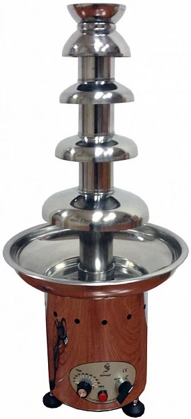 Вместительный пятиярусный фонтан для шоколада с подогревом Gastrorag CF30A подходит для приготовления фондю из фруктов и мелкой выпечки на праздничных мероприятиях.