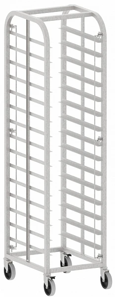 - в конструкции тележки предусмотрены фиксаторы, которые предотвращают возможность выпадения подносов при транспортировке