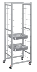 Мобильная тележка для противней Polair KE16.16.1/1 адаптирована для перемещения и хранения различных продуктов в емкостях размерами соответствующими гастро и евростандартам.