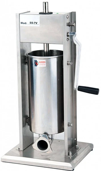 Высококачественный колбасный шприц-наполнитель с тонкой пластиной Gastrorag SS-7V предназначен для тяжелых режимов работы и длительной эксплуатации.