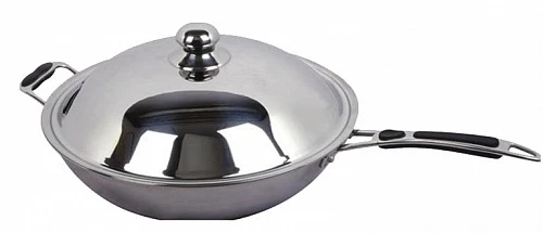Трехслойная конструкция, посередине (дно и стенки) находится слой алюминия, который облегчает сковороду, более равномерно распределяет тепло.
