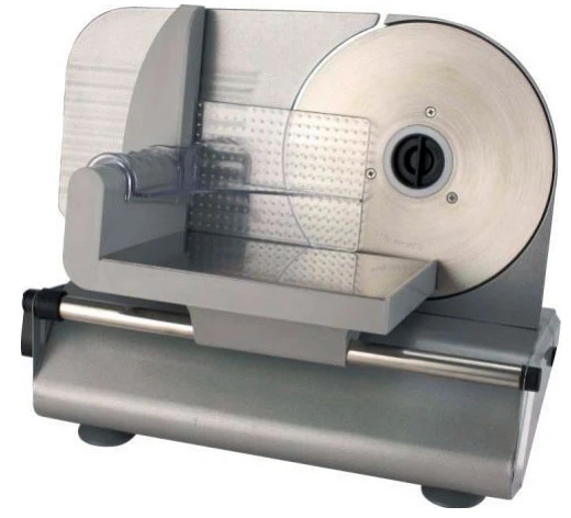 Модель оснащена ножом из нержавеющей стали диаметром 190 мм, толщина среза регулируется в пределах от 0 до 15 мм.