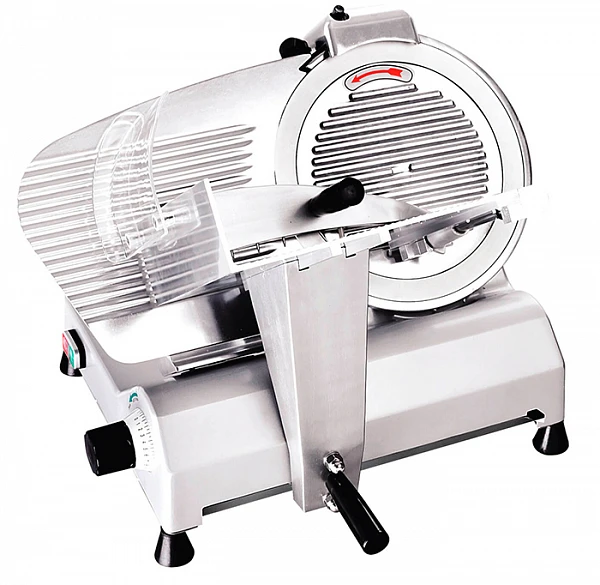 Слайсер Gastrorag HBS-B250B-1 используется в сфере общественного питания и торговли для нарезки мясных деликатесов (колбас, ветчин) и твердых сортов сыра.