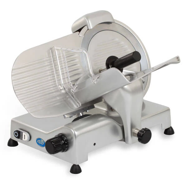 Слайсер Rgv KELLY 250/S-K предназначен для использования на предприятиях общественного питания, торговли, а также в производственных цехах, деятельность которых связана с выпуском гастрономических товаров, для нарезки мяса, сыра, колбасных изделий и других продуктов питания на ровные и равные ломтики.