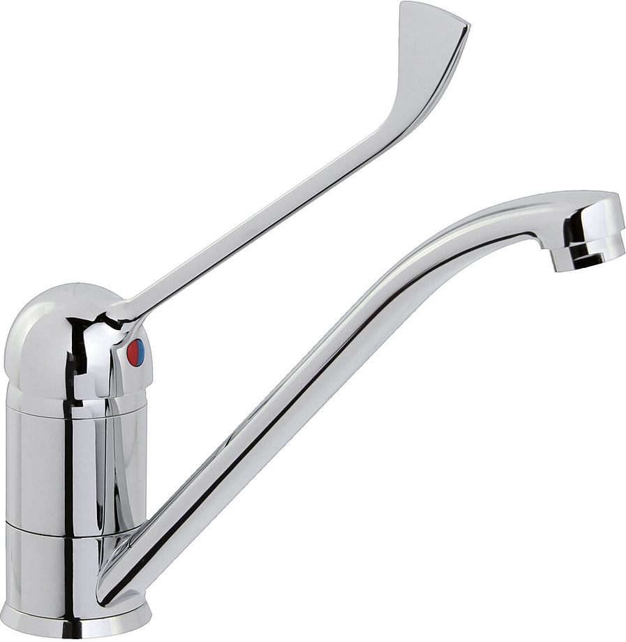 Модель устанавливается на кухонную мойку, оснащена удлиненной ручкой и длинным изливом.