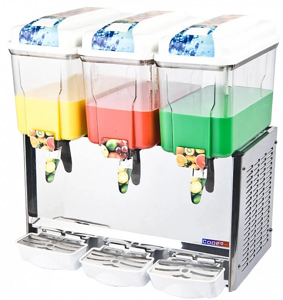 Сокоохладитель Cooleq JD-12+12+12 предназначен для поддержания постоянной низкой температуры соков, газированных напитков и т.д., а также их дозированной выдачи и перемешивания.