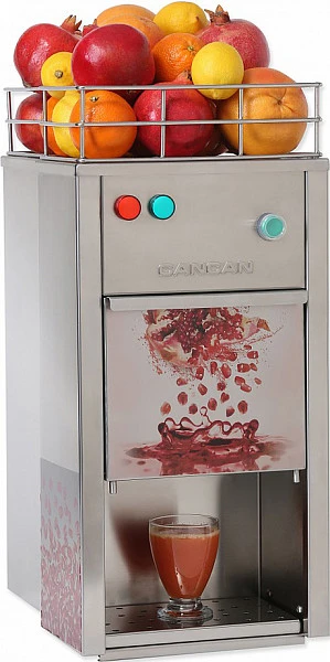 Соковыжималка для цитрусовых CanCan 0603 для гранатов и цитрусов используется в барах, отелях, ресторанах, бизнес-центрах и в домашних условиях для получения свежего сока из гранатов, апельсинов, грейпфрутов, мандаринов и лимонов. Модель оснащена ручным рычагом, приводящим в действие пресс-вал, и каплесборником. Корпус изготовлен из нержавеющей стали.