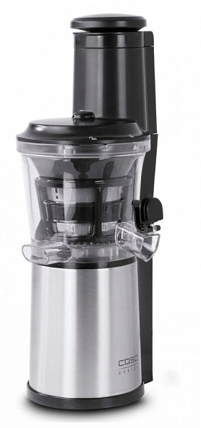 Соковыжималка Caso SJW 500 изготовлена из высококачественной нержавеющей стали, а для устойчивого положения на столе предусмотрены прорезиненные ножки. Через горловину для загрузки с диаметром в 75 мм можно помещать большие кусочки фруктов, без предварительного измельчения. Мотор потребляет всего 150 Вт и работает достаточно тихо и выдает 50-60 оборотов в минуту. Благодаря низким оборотам сок не нагревается и сохранят всё свои полезные свойства и витамины.
