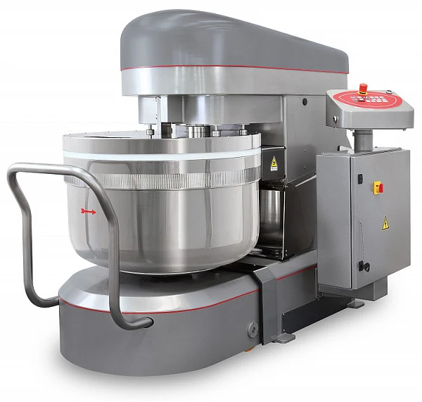 Имеет 3 мотора (один для спирали, один для дежи и один для гидравлического механизма), 2 скорости у смесительного органа и одна у дежи с возможностью реверса на первой скорости.