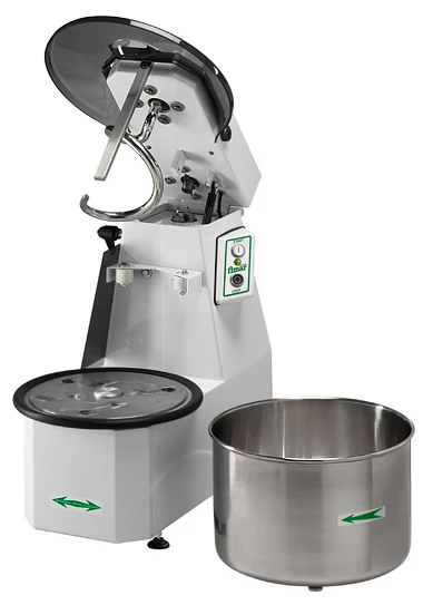Тестомес имеет съемную дежу и оснащен подъемной головкой с месильным органом