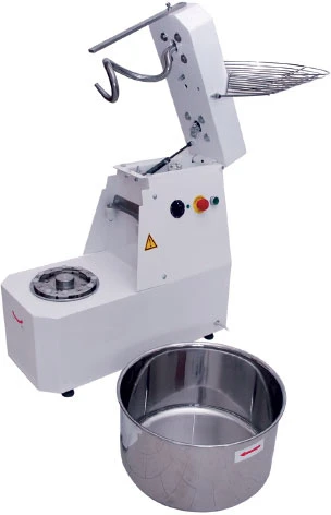 • Имеет подъемную головную часть, в которой закреплены спиралеобразный орган смешивания и тестоделительный стержень. Оба функциональных элемента непосредственно участвуют в процессе смешивания ингредиентов и в ходе замеса теста. Месильный орган и тестоделительный стержень изготовлены из нержавеющей стали.