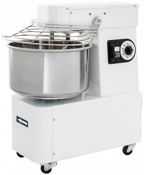 В корпусе спирального тестомеса находится односкоростной двигатель, отвечающий за непрерывное вращение месильного органа.
