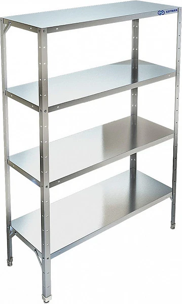 Кухонный стеллаж Kayman СК-251/1503 используется на предприятиях общественного питания и торговли, а также в промышленно-производственных заведениях для хранения различного оборудования, кухонных принадлежностей и сухих продуктов.