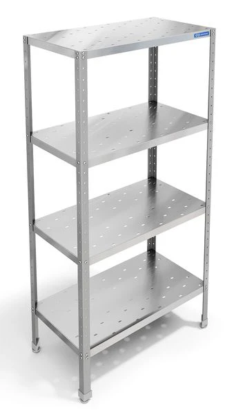 Полки сплошные с перфорацией изготовлены из нержавеющей стали AISI430, могут крепиться на требуемой высоте - шаг 100 мм.