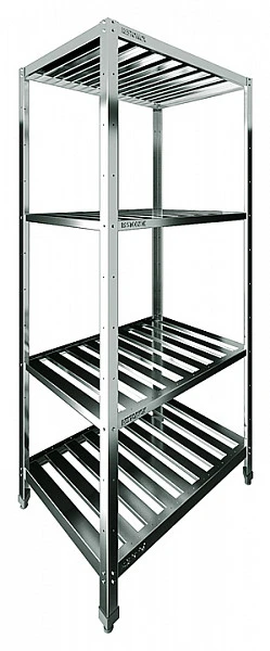 Стеллаж производственный RESTOINOX СТПР-10/4-ЭЦ разработан для применения в моечных отделах, складских зданиях или помещениях, а также в холодильных или морозильных камерах для временного или постоянного размещения посуды, различного используемого при приготовлении пищи инвентаря или пищевых продуктов.