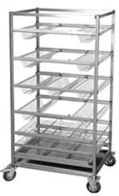 Стеллаж Проммаш СПП-02 с полками для сушки посуды используются на предприятиях общественного питания в моечных отделениях для сушки и хранения посуды и кухонного инвентаря.