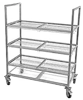 3 рабочих яруса, укомплектованных кассетами для тарелок, чашек, стаканов, ложек и т.д., а также их сушки в естественных условиях