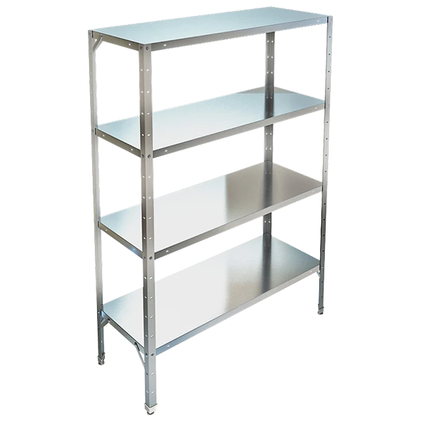 Используется в кухонных цехах для хранения сухих видов продуктов и кухонного инвентаря. Стеллаж имеет разборную конструкцию и состоит из четырёх стоек и четырёх полок. Универсальная конструкция позволяет легко производить сборку стеллажа.