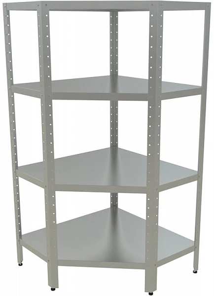 Стеллаж угловой Кобор СКУ-3/5-100/80 предназначен для размещения, хранения и сушки в естественных условиях различных предметов на предприятиях общественного питания и торговли.