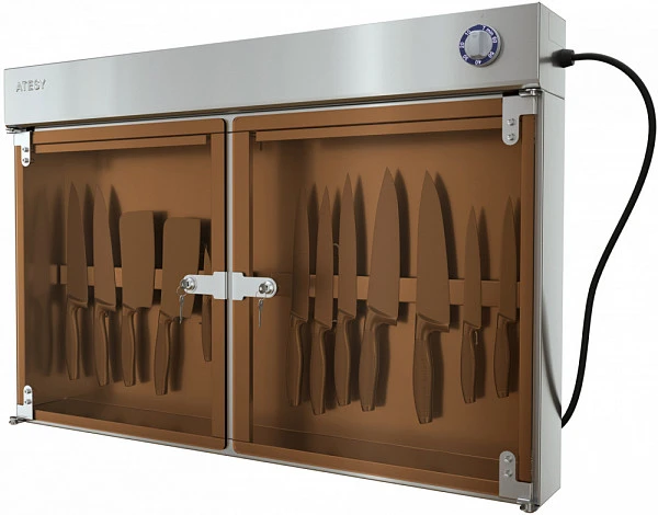 Стерилизатор для ножей Atesy СТУ-2-752-02-1 предназначен для единовременной дезинфекции нескольких поварских ножей различных размеров и других инструментов на предприятиях пищевой промышленности, торговли и общественного питания.
