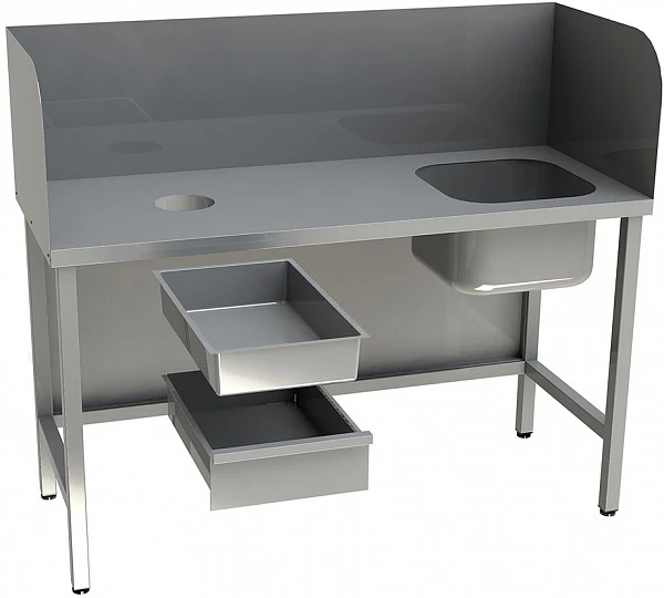 Стол для чистки рыбы Restoinox СПЧВЦ-15/7-БОП разработан для применения в моечных отделениях предприятий общепита и торговли различного формата, пищевых производств и пищеблоков для чистки рыбы.