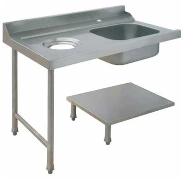 Стол предназначен для посудомоек с выходом посуды слева направо и выполнен из нержавеющей стали.